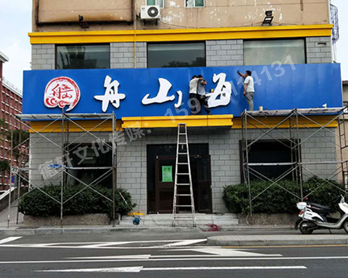 軍民路三十八中舟山海鮮 _不銹鋼包邊字